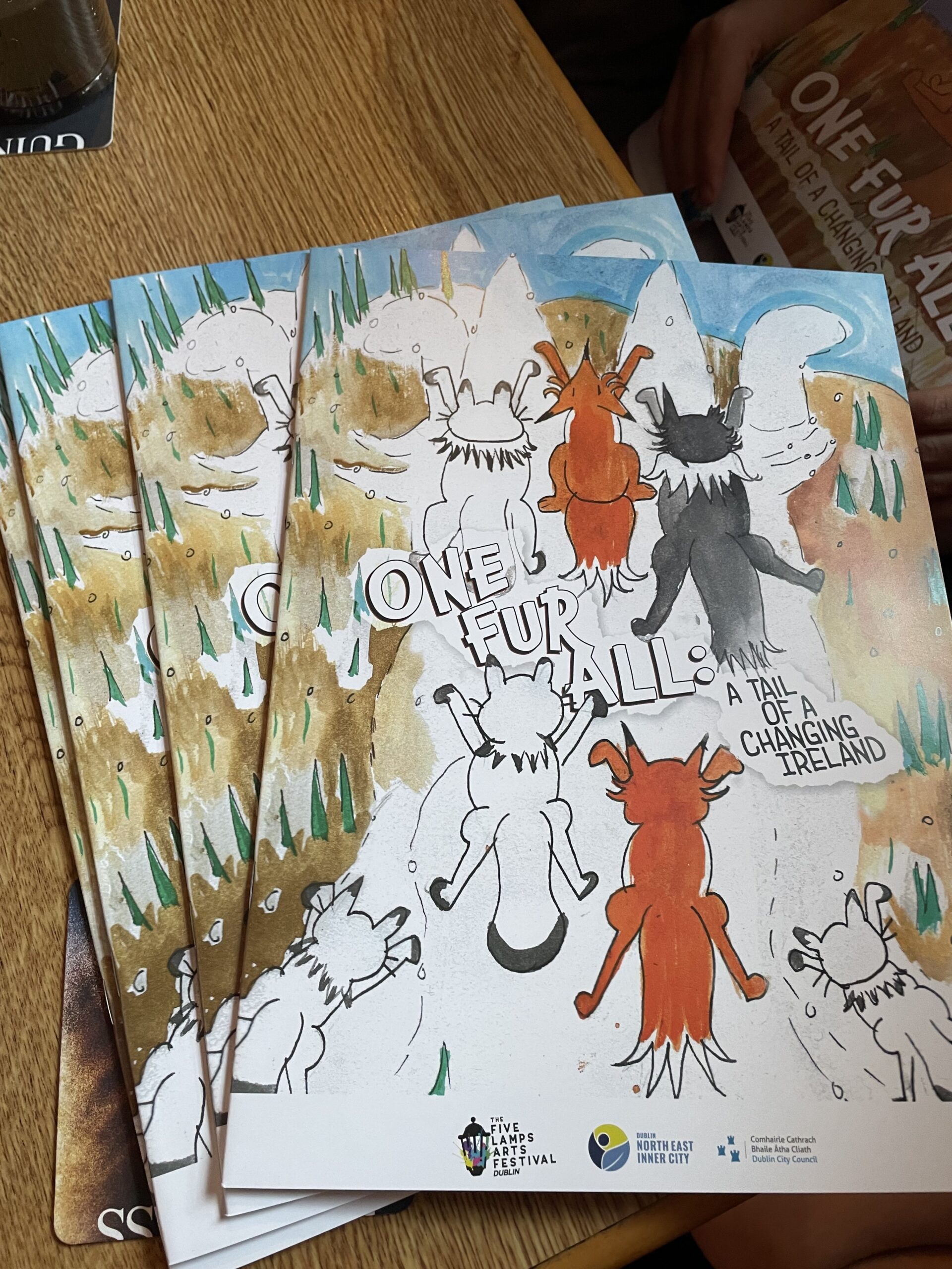 “One Fur All: A Tail of Changing Ireland” will soon be available in all good stores. For now, you can buy a copy from the Five Lamps by sending an email to contact@fivelampsarts.ie.